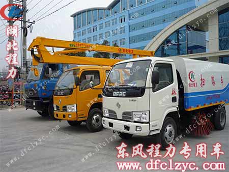 湖北程力专用汽车有限公司生产的东风小霸王扫路车采用东风公司原装底盘,底盘型号:EQ1060TJ20D3,可选装玉柴、朝柴、四达发动机,新款驾驶室,平头带翻转,汽刹,水箱容积0.8立方,在进行清扫工作的同时,可根据需要喷洒雾状水。垃圾箱容积3立方,厢体采用武钢优质钢材制作,垃圾厢内为优质不锈钢制作,可自卸。采用江铃五十铃做副发动机,省油、噪音小、吸力大等显著优点。四扫盘可同时工作,也可单边工作,连扫带吸,成效显著,广泛适用于城市街道、学校、小区、道路的清扫工作。