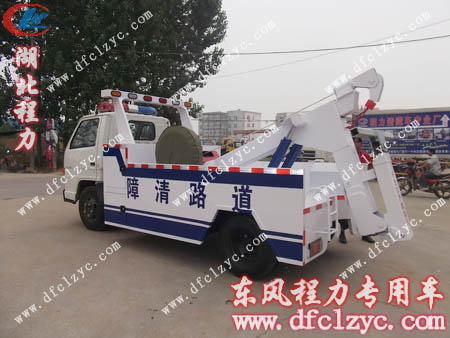 湖北程力专用汽车有限公司配置:江铃拖吊式道路清障车,采用江铃汽车公司原装底盘,底盘型号:JX1060TG23,发动机型号:JX493ZLQ3,江铃柴油环保发动机,正宗国三排放标准,115马力,新款驾驶室,涡轮增压,原装空调。清障车吊臂与托臂连结一体,根据用户要求配备辅助轮一套(充气式),安装星际牌红蓝警灯。