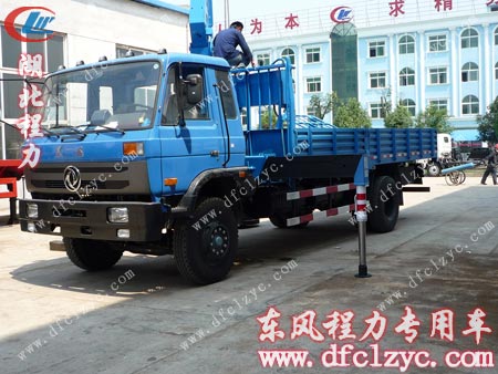 配置:湖北程力专用汽车有限公司东风153随车吊,东风公司原装底盘,底盘型号:EQ1168GLJ2,东风康明斯柴油发动机,190马力,EGR国三排放标准,新款平头驾驶室,配10.00钢丝胎,带方向助力。上装部分配徐工6.3吨三节直臂吊机,货厢采用8号槽钢铺底,间距450mm,底板为3mm花纹板,整车尺寸9000X2490X3730。参考地址:http://www.dfclzyc.com/xhtml/Show_538.html