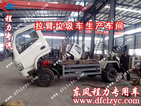 拉臂垃圾车生产车间,一排东风小多利卡底盘同时上线生产,生产的同时,也可以来一下比赛,看看谁的手艺好,车子先完工。