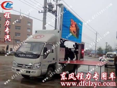 LED广告宣传车是我湖北程力专用汽车有限公司新产品,LED广告宣传车的结构一般由五部分组成:有大屏系统、供电系统、液压系统、操作系统、汽车底盘。而LED广告宣传车供电一般采用380V工业电,或者自身发电机供电。湖北程力LED广告宣传车采用优质户外高清全彩屏,亮度高、性能稳定、耐冲击,画面立体逼真、清晰动感,并且装有光控系统,可根据室外光线调节屏幕的亮度,移动快捷,可随时变更地点、更换信息,无需安装拆卸。可完成多形式、多方位、多种类的信息发布。适合做一些活动的舞台背景,或演唱会、大型晚会、大型赛事馆外的直播平台,或广告发布平台。