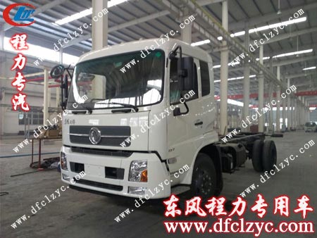 东风天锦底盘,由东风公司直接发送到湖北程力专用汽车有限公司,图中刚到厂的原装底盘,即将上线生产
