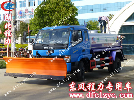 加装雪铲后的东风劲卡排半洒水车,冬夏两用车一个价格就搞定了,何乐而不为呢!