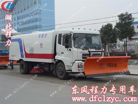 加装雪铲后的东风天锦扫路车,一车三用(清扫、洒水、铲雪)