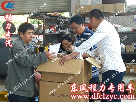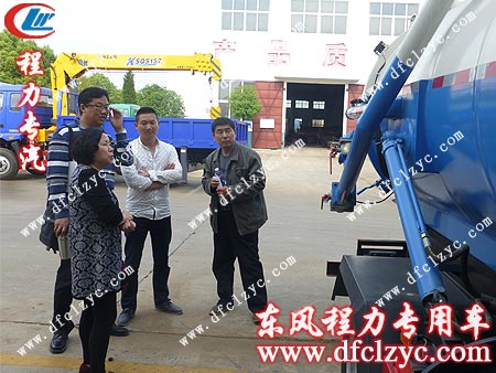 湖北程力专用汽车有限公司高压清洗车车间艾主任正在为客户讲解清洗吸污车的详细配置,由于客户购买高压清洗车是专门用于管道疏通,对于吸污功能要求可有可无,最后在我湖北程力公司艾主任的建议下,客户还是决定购买东风多利卡高压清洗车。