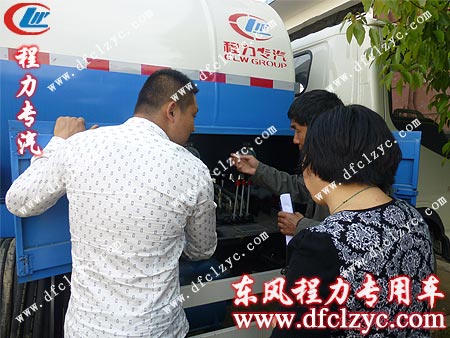 湖北程力专用汽车有限公司的东风多利卡高压清洗车,如图所示并未做油漆,只需客户验车试车满意后,进入油漆车间即可出厂,新乡用户作为市政环卫公司对高压清洗车特别的了解,对东风多利卡高压清洗车进行详细的查看,试车,最终才签订合同。