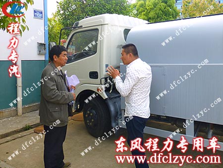 湖北程力艾主任为客户讲解东风多利卡高压清洗车