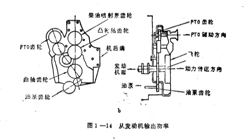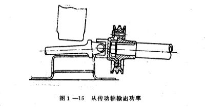 从变速器输出动力是目前广泛采用的一种方式。动力可由变速器的中间轴或输入轴或输出轴(图1 -13)输出,经变速后,传给专用设备。象自卸车、液罐车上的高压油泵,粉状货物运输车上的真空吸尘和压缩空气排尘的真空泵和空压机等都是利用变速器输出动力的。但有些专用设备不便利用从变速器输出的动力,则可考虑从发动机前端和后端输出动力(见图1 -14),或从传动轴输出动力(见图1 -15)。从发动机前端或后端输出动力,结构比较复杂,改装工作量较大,从传动轴输出动力,由于专用设备固定在车架上,传动轴随汽车行驶同专用设备产生相对位移,为此设计时应使用可伸缩万向节的传动轴同专用设备连接。以便动力输出装置同专用设备间有可能相对运动。