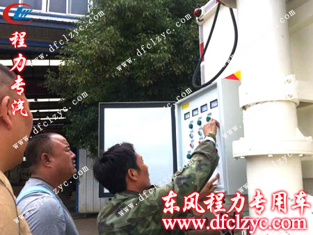 湖北程力集团技术人员正在耐心为客户培训东风天锦散装饲料运输车,每个按键的功能一一讲解,其工作态度获得了客户的认可。