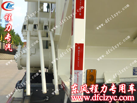 在湖北程力销售经理的带领下,张先生现场验车。东风天锦散装饲料运输车罐体容积为20立方,罐体尺寸为:6100X2420X1930(mm),均分三仓,配6.86米出料管,举升高60度,出料口离地高度约为8.9米。程力专用汽车股份有限公司技术人员从送料、升料、出料一步步为用户操作讲解。