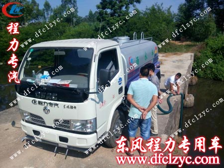 湖北程力专用汽车有限公司东风劲卡洒水车垂直吸程<6米,东风劲卡洒水车一到用户所在地客户开始试车,接上吸水管、启动取力器、打开进水口球阀,湖北程力集团洒水车配备程力威牌大功率洒水泵,抽水速度快,约5分钟左右抽满整个罐水。