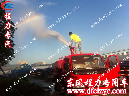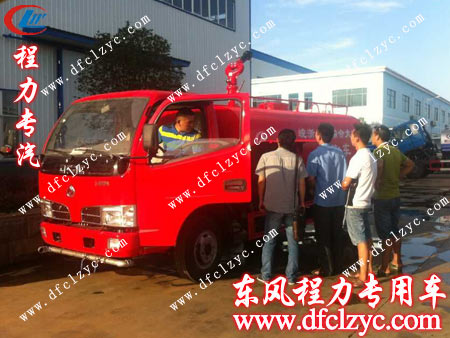 用户现学现用,亲自登上东风福瑞卡消防洒水车操作