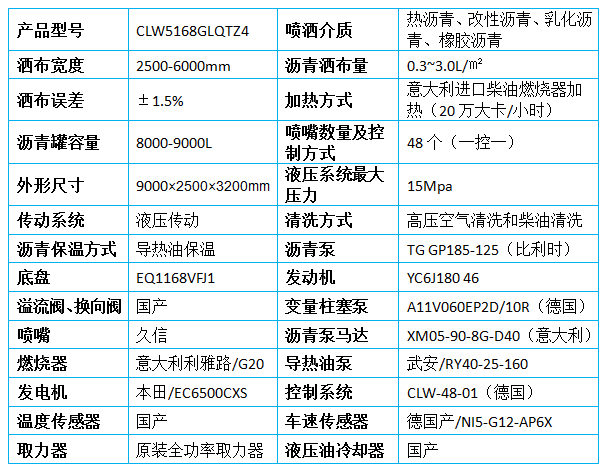 1.程力专用汽车股份有限公司的东风特商智能型沥青洒布车液压泵、沥青泵等主要配置均采用国际知名品牌;