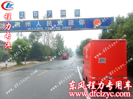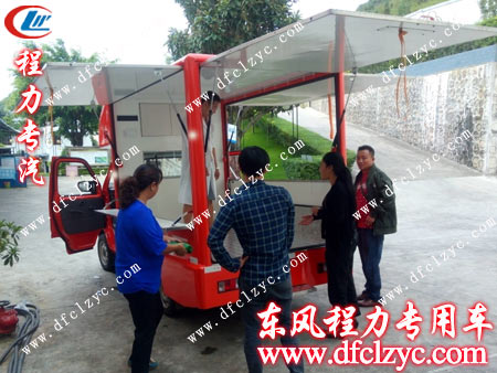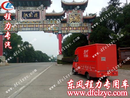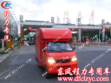 湖北程力长安移动售货车厢体三面上翻,左右两侧为30公分的吧台采用内外玻璃钢,带功放,喇叭,箱内前后左右个配一个插座,底盘为铝花纹板,尾部踏板为抽拉式,厢体尺寸2450×1580×1650mm。经过将近10天的生产周期,长安移动售货车连夜出发,为在黔西南州邱仕益品食品有限公司周年庆典前赶到贵州兴义。