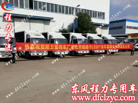 2015年9月10日程力专用汽车股份有限公司广告宣传车专业厂迎接来自奇瑞公司的相关领导对其前期小批量订单的验收,我们安排了技术人员向奇瑞公司相关负责人对产品做了详细的讲解,包括产品使用过程中注意事项,LED操作保养事项,液压部分的操作演示,本次产品验收奇瑞公司表示相当满意,并对后期的120台单子做了时间节点的调整,湖北程力公司领导也表示会按时按质的完成任务。