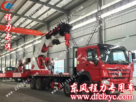 湖北程力在专用车的生产道路上不断革新,生产研发多元化、多功能、质优价廉的随车吊,程力专用汽车股份有限公司自主研发、生产制造的大吨位折臂吊是一种集起重、运送为一体的新式高效起重运输设备,因其具备既能起重又能载货、机动灵敏这一共同特色,所以广泛应用于交通运送、电信电力、土木修建、货场码头、库房、修建内搬家等领域和场所。