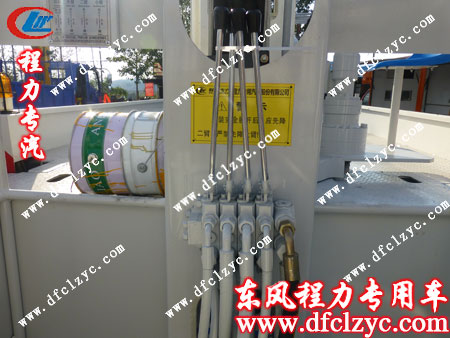 东风天锦高空作业车带两个操作平台,可以实现各功能的转换。通过操纵多路换向阀的手柄可完成伸缩支腿和工作臂上下旋转工作。在此提醒广大用户在操作多路换向阀时应挂上取力器带动油工作。