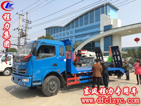 湖北程力销售经理带领焦总等人来到平板车车间,平板车车间外面停放着一系列东风福瑞卡挖机平板运输车,焦总细心的排查着每一辆车子。最终,焦总决定就购买东风福瑞卡平板运输车。随后焦总来到办公司签订了购车合同,在支付了全款之后,湖北程力专用汽车有限公司销售经理马上办理该车的所有手续。