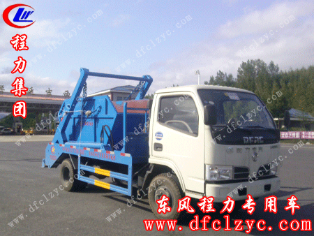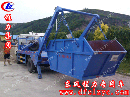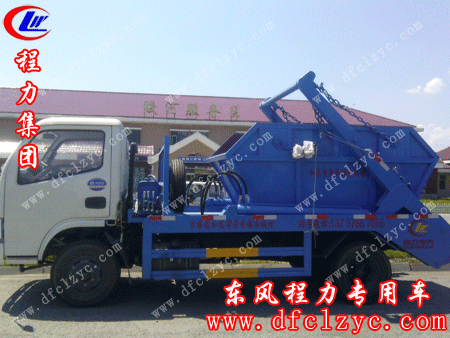 湖北程力专用汽车有限公司东风小多利卡摆臂式垃圾车,东风公司底盘,锡柴发动机,国四排放标准,车辆优点:液压操作,一车可配多个垃圾斗,垃圾斗可吊上吊下,垃圾斗吊上后可自卸。