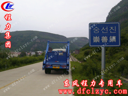 湖北程力集团东风小霸王摆臂式垃圾车即将到达吉林延边崇善镇