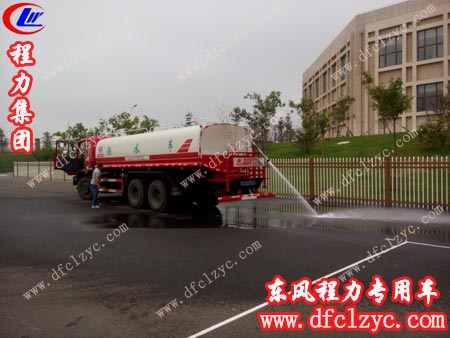 东风后双桥洒水车到达张总用户所在地,上图是用户正在为该车试水,东风后双桥洒水车同其他洒水车一样,都带有前冲后洒、侧喷、洒水高炮等专用功能。东风公司原装底盘,配备康明斯210马力发动机,罐体容积约20立方。湖北程力专用汽车有限公司官方销售网:http://www.dfclzyc.com。