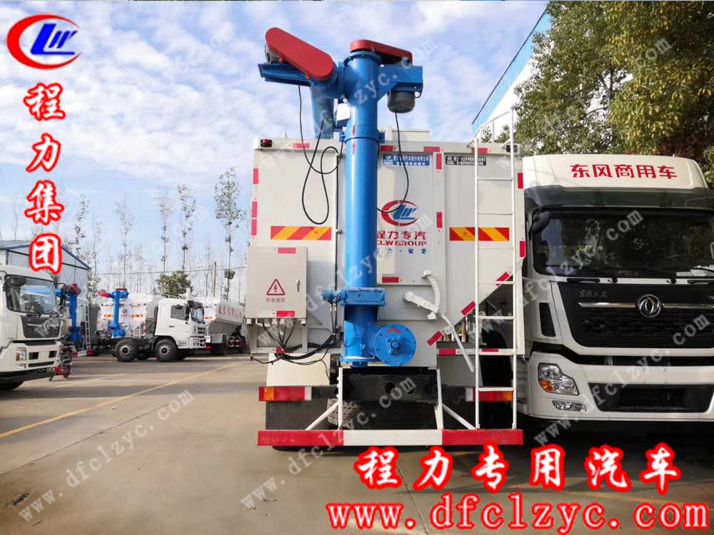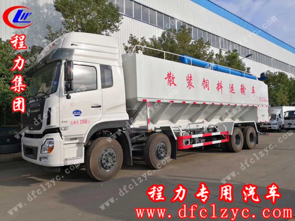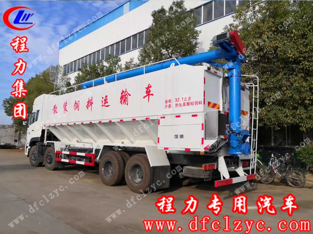 上图为湖北程力集团生产的国五东风天龙前四后八散装饲料车